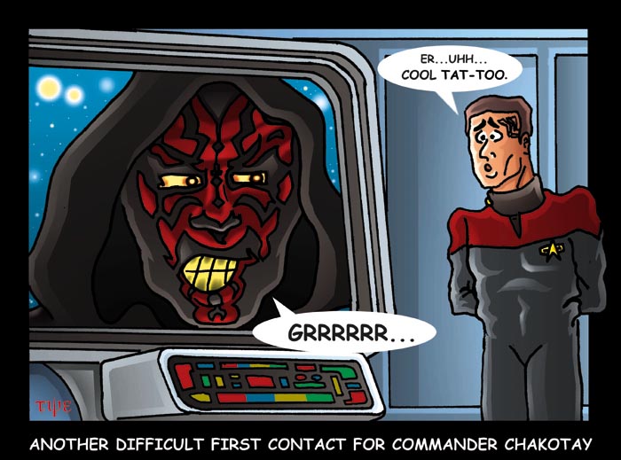 met him at Supercon and the recent Creation Thanksgiving conventions and I was impressed with his work. The artwork below also appears on Tye's TheLighterSideOfSciFi.com website.