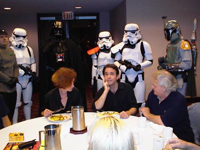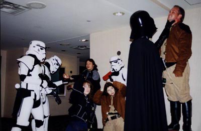 These are photos from The Main Mission: 2000 convention held on September 1-3, 2000. This is one of the largest Sci-Fi conventions in NY and there were many Sci-Fi guests and fans in various costumes. These are shots of some of the BSG guests, other stars from Space 1999, and some great fan costumes.