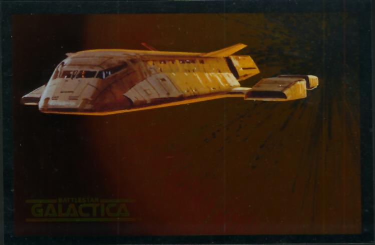 These are scans of some of the rare Over-Sized Foil Dart Flipcard Battlestar Galactica Cards from the 1996 Set. These scans were provided by Chris Dawson (cdawson@sprint.ca) from his Card website at http://pages.sprint.ca/silverdragon/. I am still missing scans for the GF3, GF4, GF5, BB1, BB2, and BB4 Foil cards, if anyone has scans of them, please pass them along.