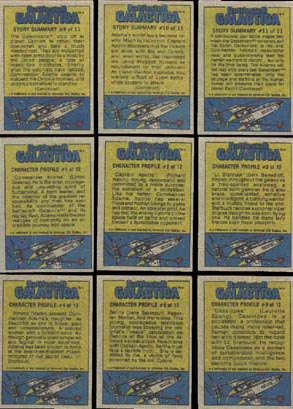 on the card backs includes a Story Summery (11 Cards), Character Profiles (12 Cards), and TV Facts (21 Cards). They are readable and some