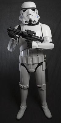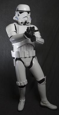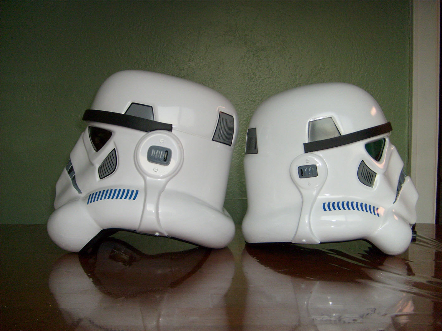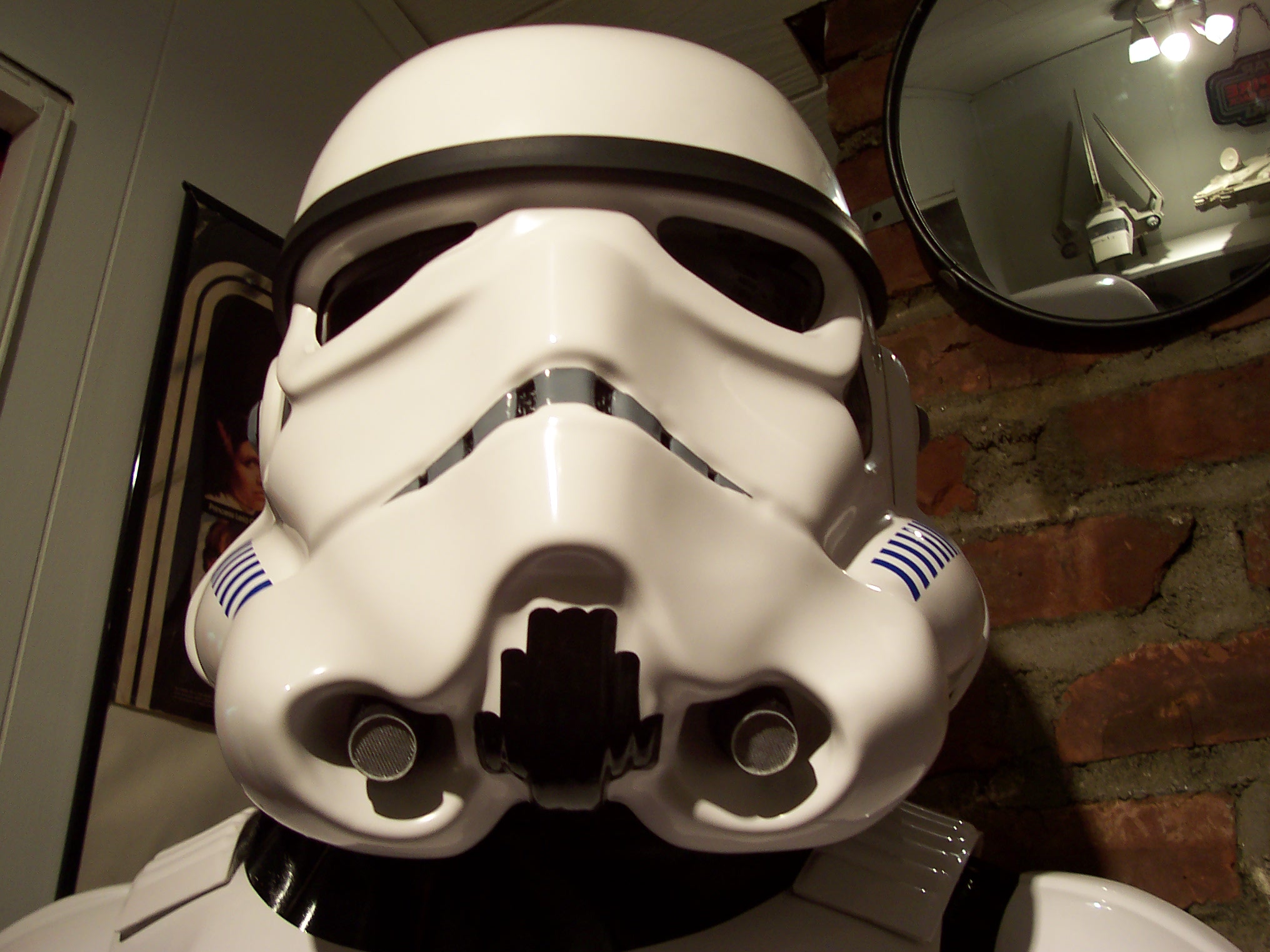 Below are some shots of my Stormtrooper armor after I completed some extensive upgrades to get it to an Elite level. I joined a popular forum called FISD - The First Imperial Stormtrooper Detachment, part of whitearmor.net. They maintain very high standards for Stormtrooper Armor, to ensure that it is as movie accurate as possible. They have resources and tips on how to get your armor to an "Elite" level. $500 and three months of work later, my costume is finally at that level. The upgrades included a new ABS Hero helmet thats much more accurate then the standard FX one. I also closed the side gaps, upgraded my blaster with a mod kit, added a canvas belt, cut the butt plate, and a host of other major and minor upgrades. The biggest recent additions are the communicator, Grappling Hook w/box, and Latex Handplates, that make up my new Hero Stormtrooper setup. The next 3 shots compare the old FX helmet on the left to the new accurate fiberglass stunt one on the right. The last few shots are of my new ABS screen accurate "wonky" hero helmet. Special thanks to Tray for hooking me up with the hero kit, and helping me build it correctly. Special thanks to Phillip Moy ( http://www.philipmoyphotography.com) for taking the first 9 photos. The last 9 are of my new car design. Just completed Stormtrooperfying my car with some Vinyl decal material. Created the design myself to emulate a Stormtrooper helmet. Took me about a week to cut it, and a few hours to apply. I have wanted to do this since I got this car two years ago, and I finally decided to go for it. I tried to use all the major elements of the helmet and make them fit the shape of the car.